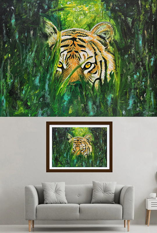 colour and power of this majestic creature. The stripes serve to break up the tiger's outline against